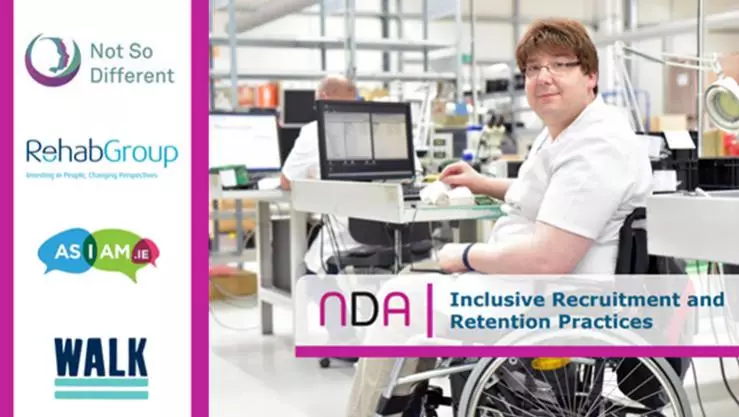 'Inclusive Recruitment and Retention Practices' is an e-learning session funded by the National Disability Authority (NDA), the independent statutory body that provides information and advice to the Government on policy and practices for persons with disabilities living in Ireland, and co-produced by Not So Different, Rehab Group, AsIAm and WALK - four organisations with vast experience on the supporting people with disabilities' in the workplace.
